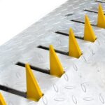 Lomo de toro metálico con púas. Dispositivo que bloquea el acceso o salida de vehículos rompiendo los neumáticos al pasar sobre él.
